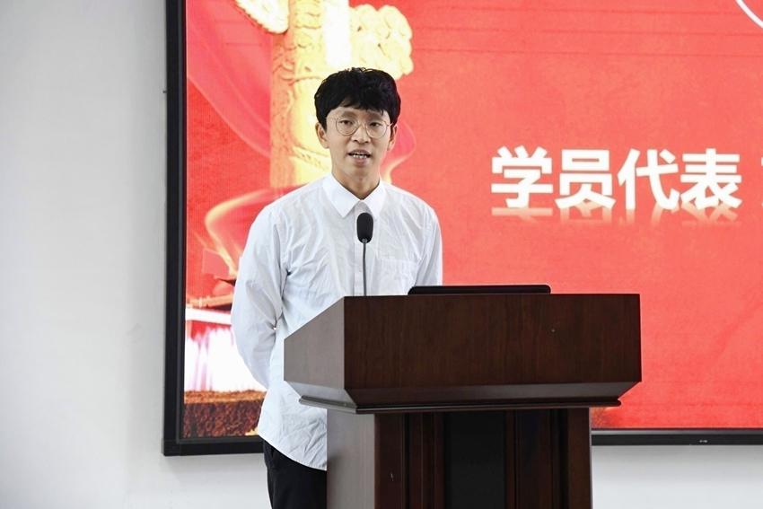 学员代表刘峻松发言表示:学员们要端正入党动机,提高党性修养;严于律己,学习党员的先进性;积极参加组织活动,提升综合素质。