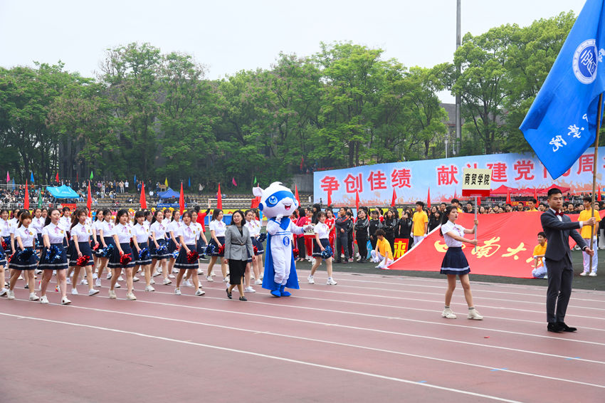 上午8:30,运动会开幕式顺利进行。方阵列队严整,步伐铿锵,以精神饱满的姿态先后入场。在学院党委副书记、纪委书记兰英的带领下,我院代表方阵入场,彰显商贸风采。