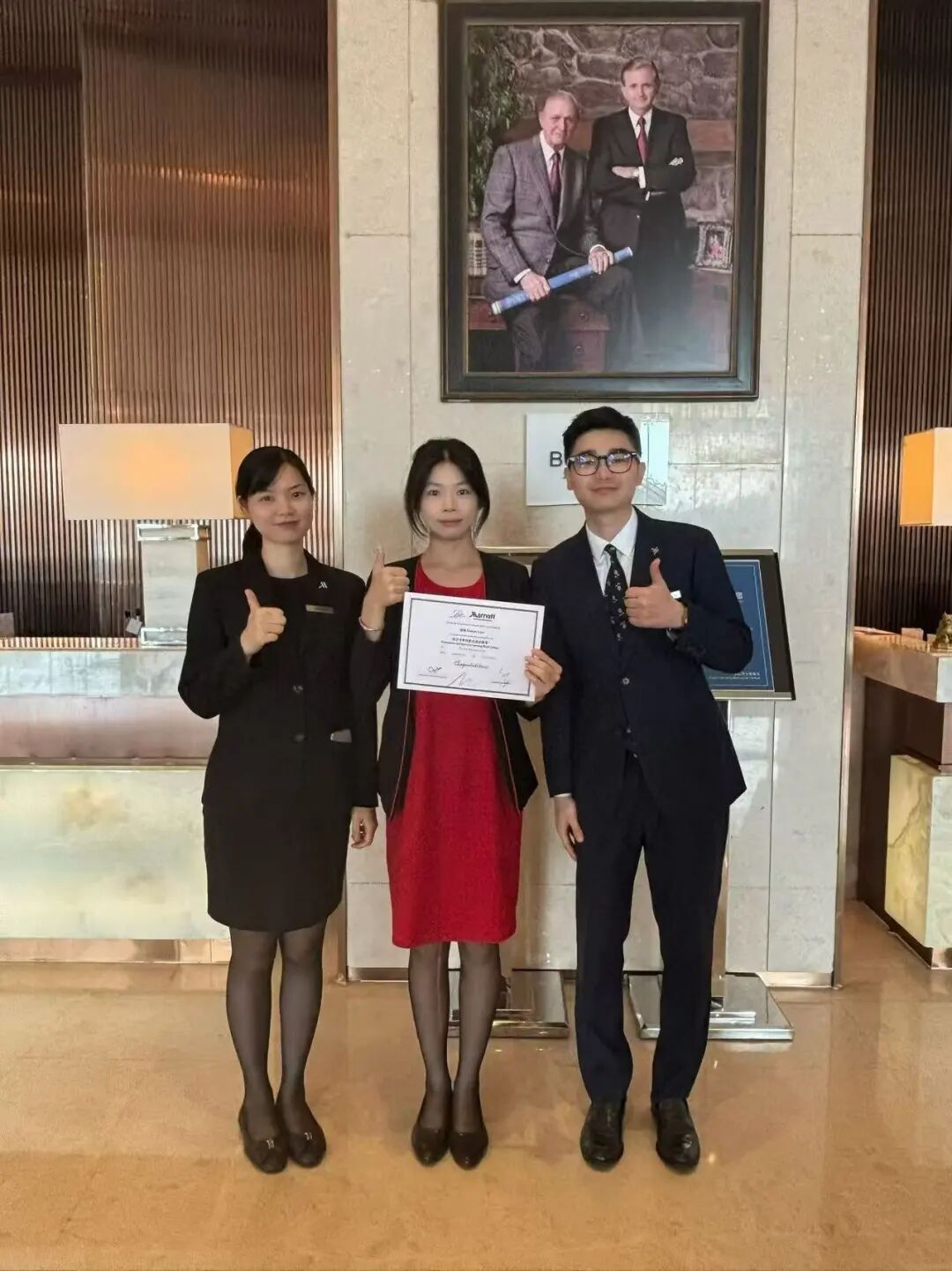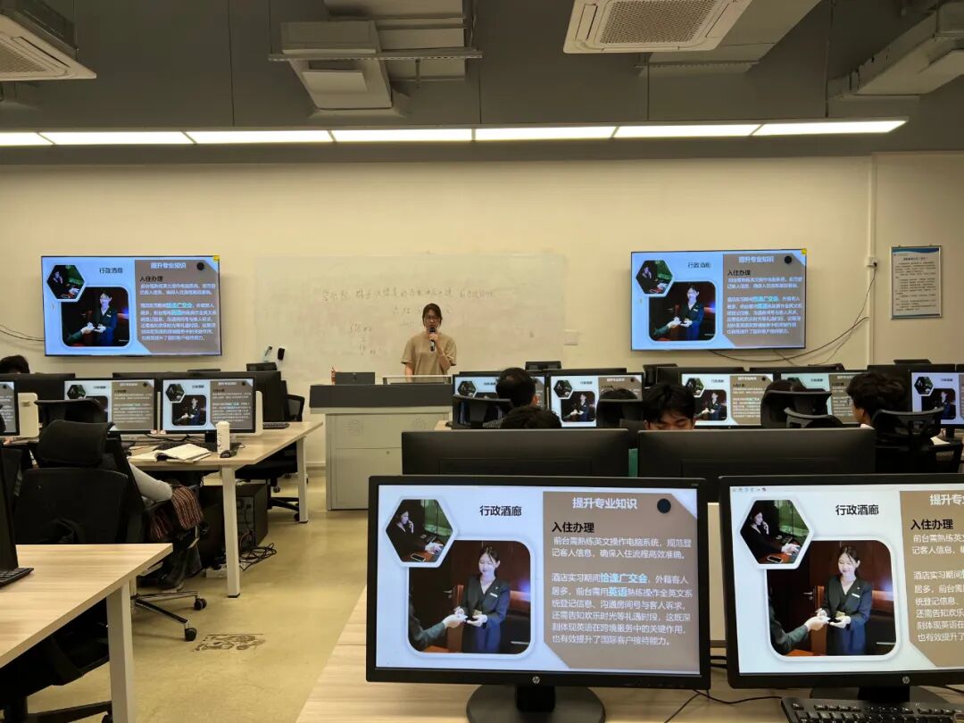 “刚开始对着全英文opera系统界面会紧张,多亏导师一步步带着练,从帮客人查询房态到办理入住,学习的过程既紧张、有挑战又收获满满。” 同学们纷纷表示,每天下班后,会和老师、同学一起梳理当天遇到的客诉案例,并且在导师的线上指导下总结服务经验,不断优化沟通话术和服务技巧。
