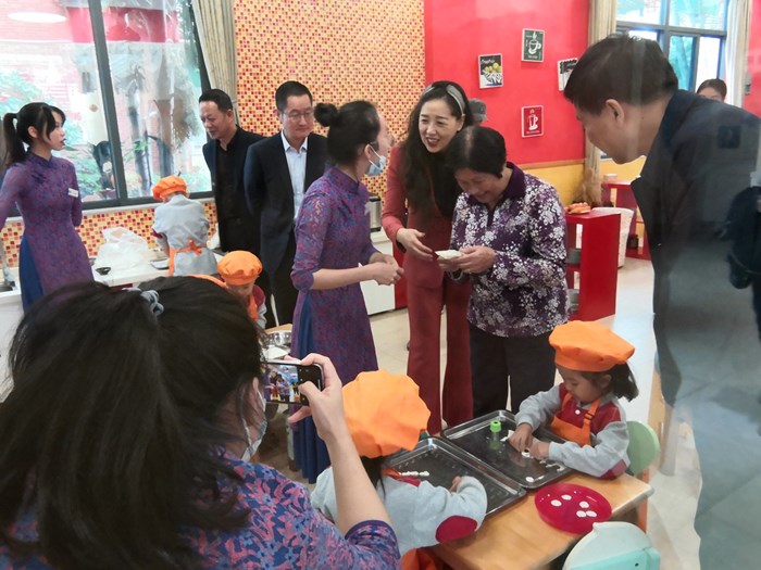 为了进一步深化“产教融合校企共育”工作,2020年11月24日,董事长梁炽娟携学院院长刘惠坚、副院长苏成柏、教育与艺术系主任和学前教育专任教师一行,来到凤凰城中英文幼儿园,观摩学院2018级学生教育实践成果。