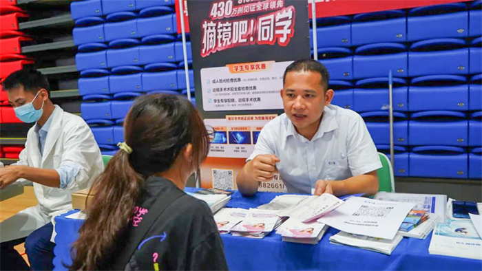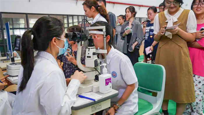 在活动现场,粤北爱尔眼科的专业团队为师生们提供了眼健康检查初级筛查服务,包括视力检查、电脑验光、裂隙灯检查等项目,帮助师生了解自身眼部健康状况。