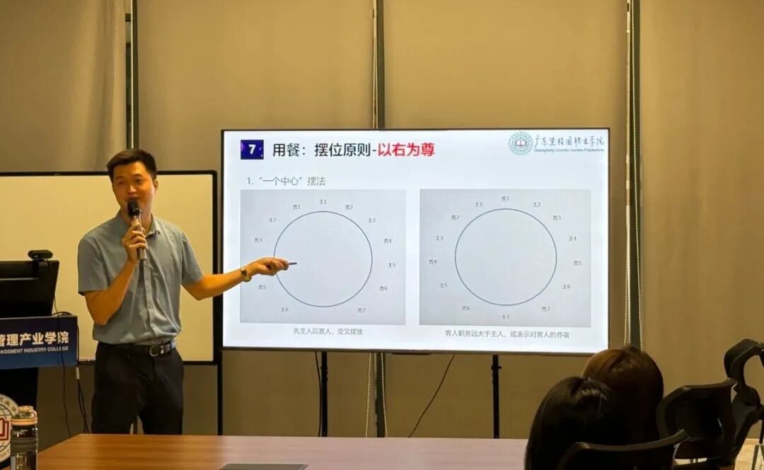 授课讲师还针对不同专业学生的需求给出建议:“电商专业学生未来可能对接企业直播活动接待,要重点关注‘活动流程组织’;酒店管理专业学生更需强化‘用餐摆位、住宿对接’细节,大家可以结合专业优势,在会务中发挥特长。”
