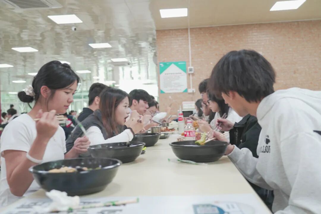 中午时分,碧职学子和暨大同学共进午餐,延续友谊时光。他们一边品尝校园美食,一边围绕学习、升学、实习、就业等话题继续交流,不少同学还互相加了微信,约定保持联系,共同进步。