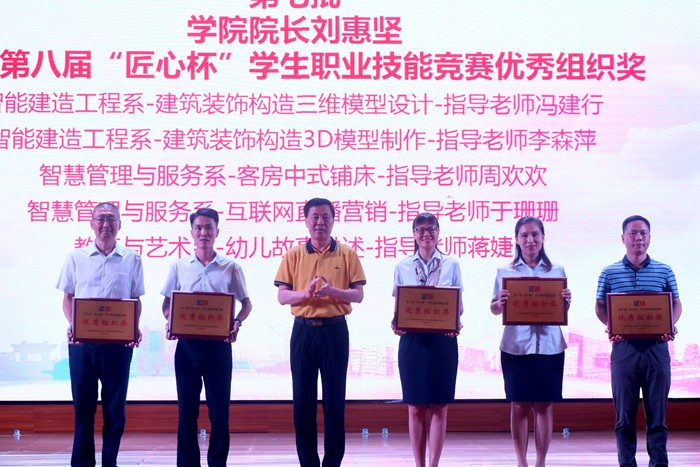“今天很高兴学院专门为第八届匠心杯技能大赛举行总结和表彰大会。希望今后每年都要继续加大力度对取得好成绩的同学给予庆祝表彰,并且形式越办越好,内容越来越丰富。”