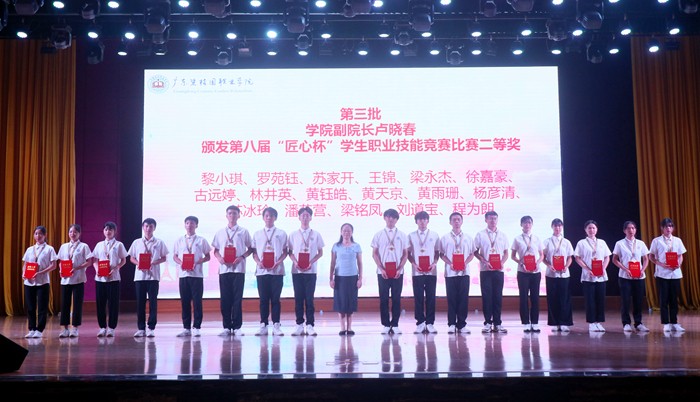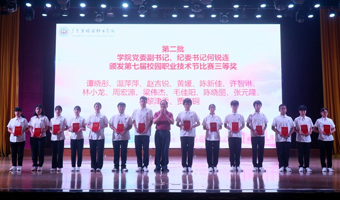 获奖学生代表杨彦清发言,感谢学院领导和教师的辛勤指导让自己坚定了专业发展选择,他号召学院同学们努力拼搏,脚踏实地,努力前行,争取把自己铸造成“对人好、对社会好”的高素质技能精英人才。