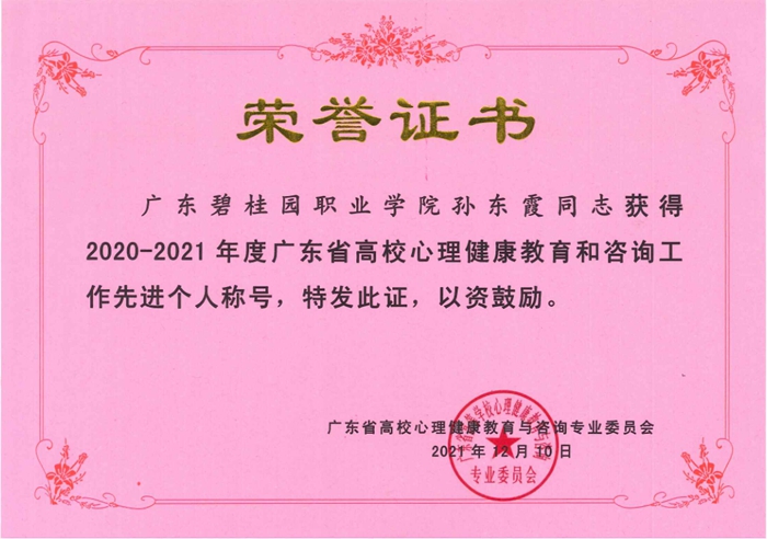 大会总结了近两年来广东省高校心理健康教育和心理咨询工作,完成了专业委员会换届选举工作,并表彰了全省高校心理健康教育与咨询工作突出的先进集体、先进个人、优秀中心主任和优秀论文与出版物、“三全育人”和高校课程思政建设成果展览入选单位。其中,金年会jinnianhuicom院心理健康教育与咨询中心被评为“2020-2021年度广东省高校心理健康教育与咨询工作先进集体”,学院教师孙东霞荣获“2020-2021年度广东省高校心理健康教育与咨询工作优秀个人”称号。另外,学院提供的心理健康教育成果被选入2021年广东省学校“三全育人”和高校课程思政建设成果展览并受到表彰。