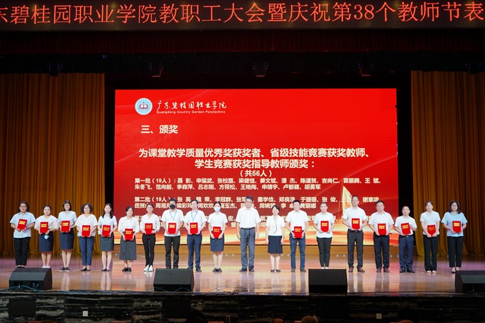 梁荣新等17名教师被授予“优秀教师”荣誉称号,宁雁青等12名行政人员被授予“优秀教育工作者”荣誉称号,陈美华等2名辅导员被授予“优秀辅导员”荣誉称号,袁爱文等3名教官被授予“优秀教官”荣誉称号,袁进等10名员工被授予“优秀员工”荣誉称号,申靖宇等18名学生导师被授予“优秀学生导师”荣誉称号。曾淞等22人次参加各级各类竞赛获奖14项,申耀武等34人次指导学生参加各级专业技能大赛获奖22项,李森萍等26人次指导学生参加各类活动竞赛获奖15项。申耀武等24名教师被授予“课堂教学质量优秀奖”。
