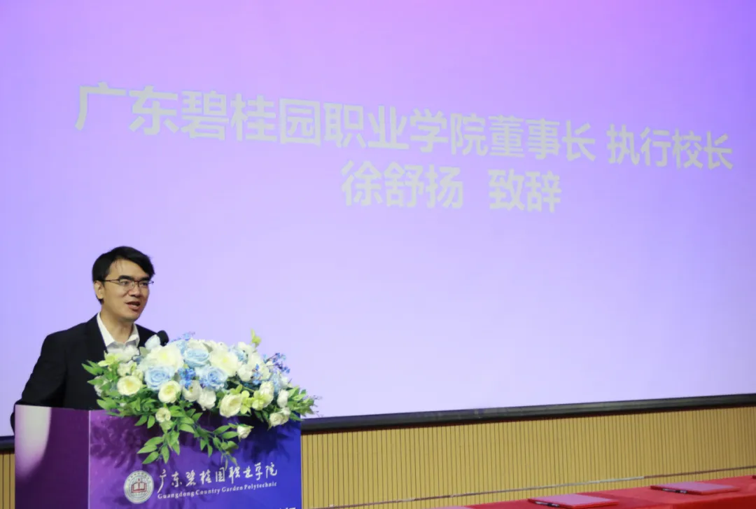 徐舒扬在致辞中介绍了学校创办以来,坚持产教融合、校企合作,携手碧桂园、华为、腾讯云等知名企业共建8个产业学院,打造150余个校外实践教学基地,就业率与薪酬位居全省前列。面对低空经济发展机遇,学校联合企业共建金年会诚信信誉至上,通过“教学实训、科研创新、产业服务”三位一体模式,重点培养无人机操控、低空管控、场景应用等领域的高素质技能人才,让学生在真实项目中练就过硬本领,实现“毕业即上岗、上岗即胜任”。学校期待与各界深化合作,共同推动教育链、人才链与产业链融合,为区域产业高质量发展注入职教动能。