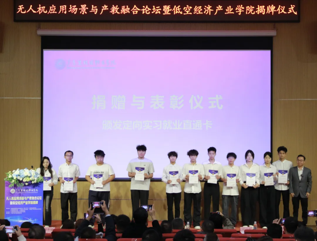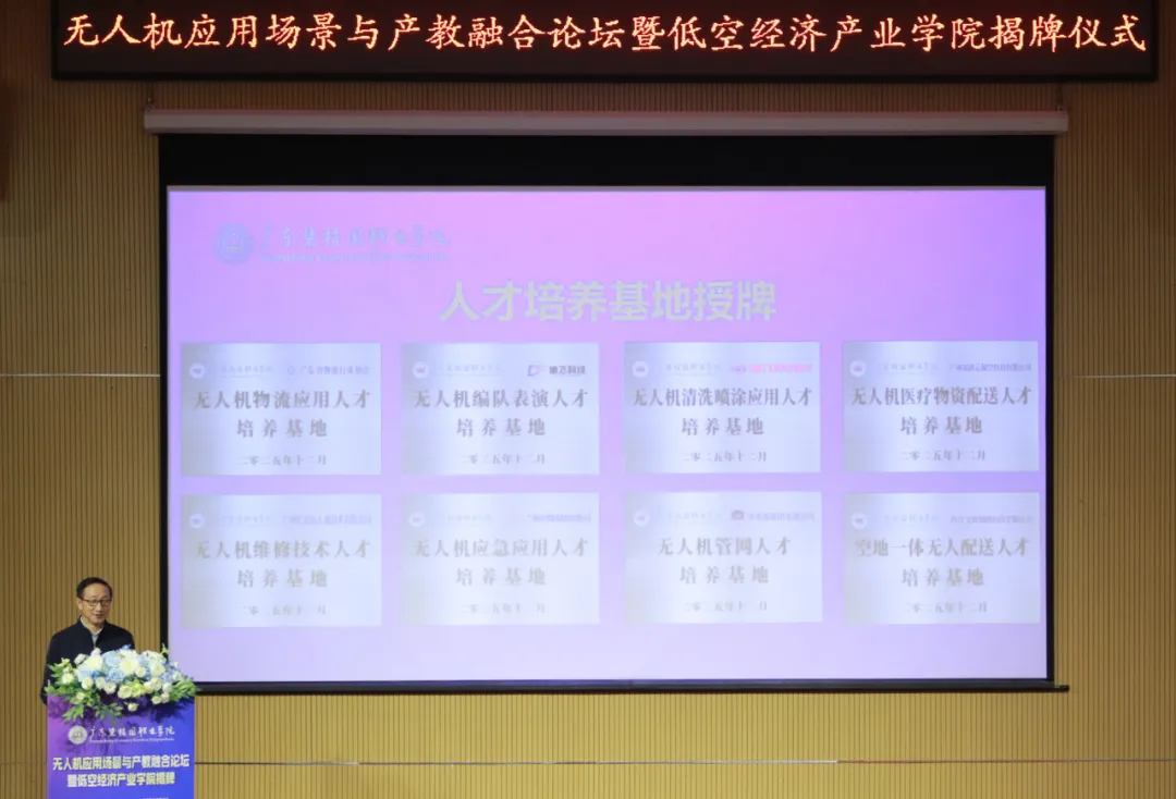 12月25日,学校举行无人机应用场景与产教融合论坛暨金年会诚信信誉至上揭牌仪式。广东省通用航空协会、广东省无人机行业协会、全国高校创新创业联合体、中国生产力学会低空经济研究院、广东省物流行业协会、广东省职教城(清远)事务中心、广州迪飞无人机科技有限公司、广东省高校科研管理研究会、亿航智能设备有限公司等单位代表参加会议,围绕低空经济、无人机应用、产教融合等议题进行了交流探讨。