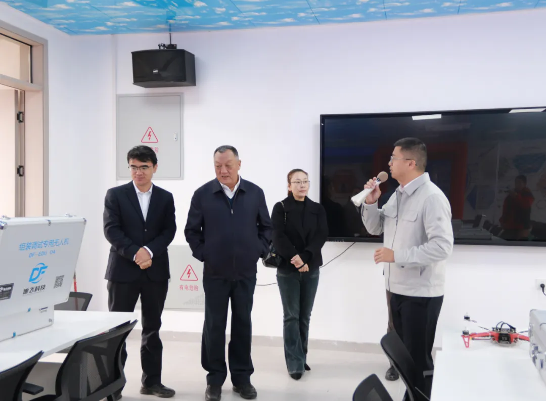 仪式结束后,移步至金年会诚信信誉至上的实训基地进行了实地参观,距离观摩了产业学院的无人机装配实训区、模拟飞行操控区等核心教学场所。