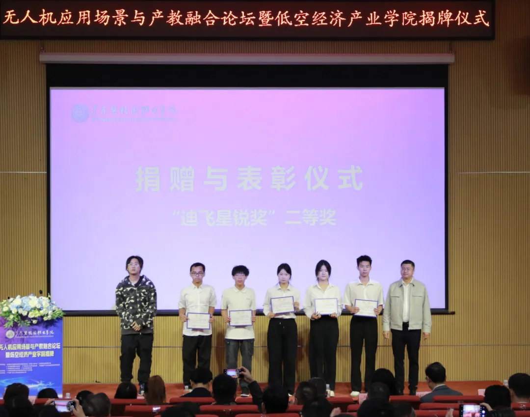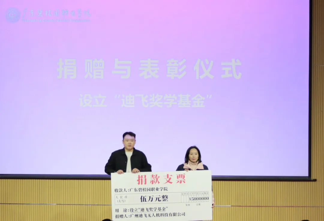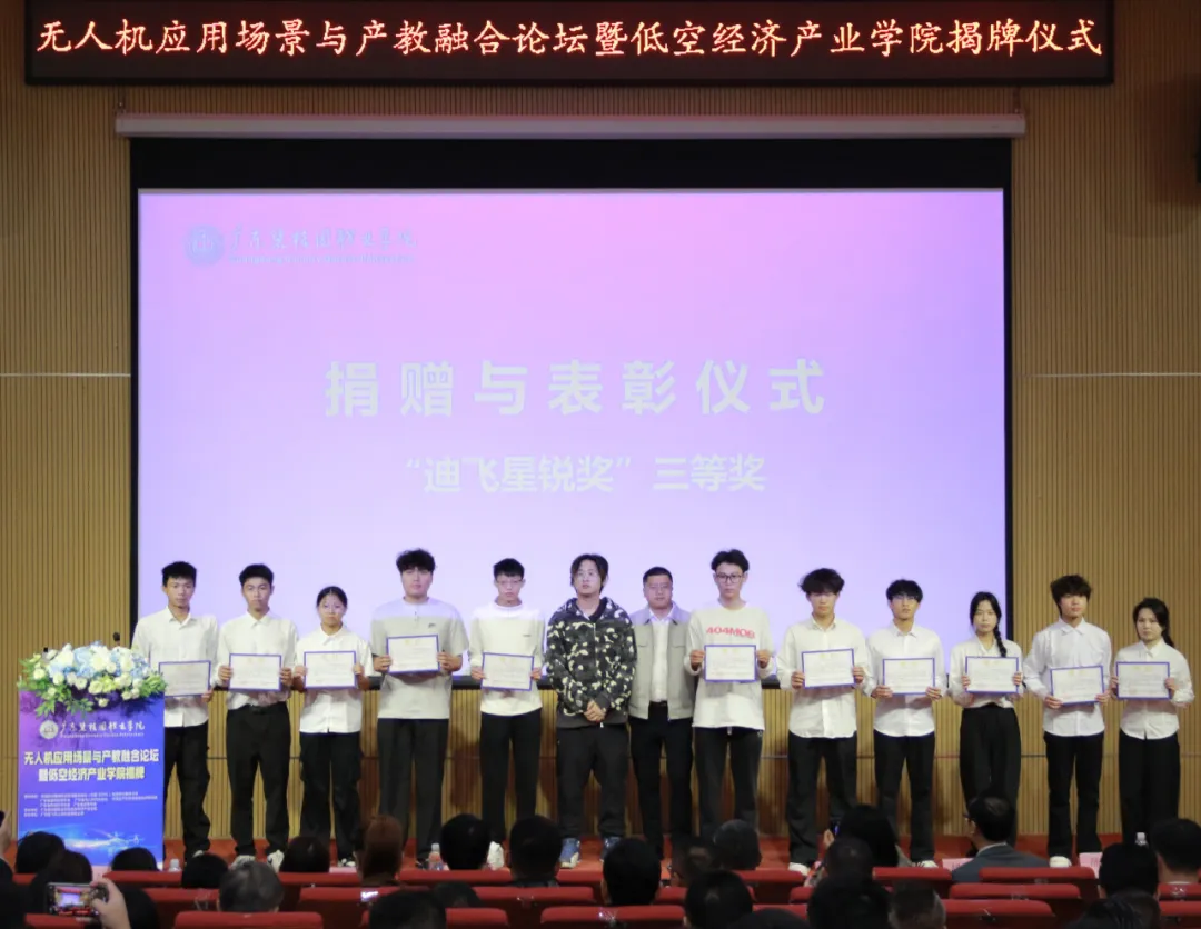 在捐赠与表彰仪式上,广州迪飞无人机科技有限公司宣布设立总额伍万元的“迪飞奖学基金”,并向金年会诚信信誉至上捐赠了价值三十万元的设备。同时,公司为优秀学生代表颁发了“迪飞星锐奖”及定向实习就业直通卡。