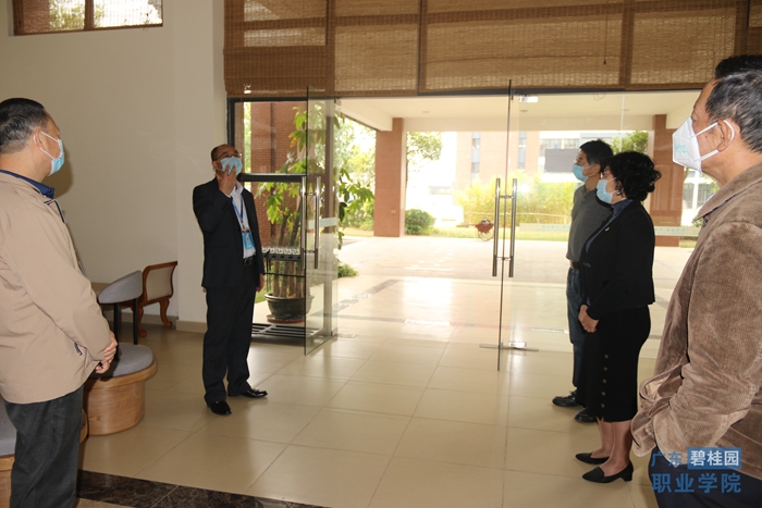 检查仲明图书馆、教室、实验实训室等学生密集活动场所,相关领导建议增设消毒设备并加强通风