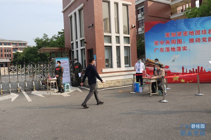 检查校门值班岗体温检测情况,许书记建议人工填写信息改为手机扫描健康码填写